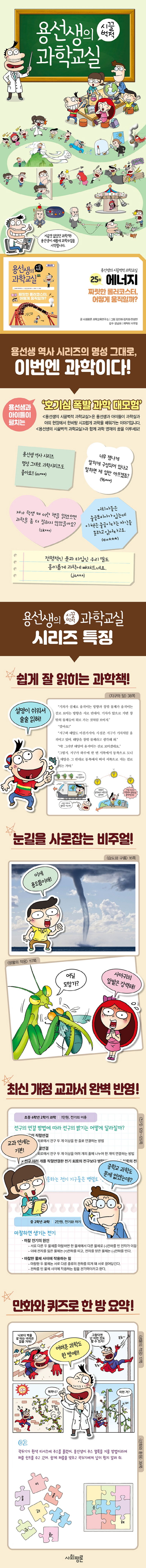 2021년, 부동의 역사 베스트셀러 ‘용선생’이 새롭게 선보인 《용선생의 시끌벅적 과학교실》 시리즈 신간이 나왔습니다. 《용선생의 시끌벅적 과학교실》은 용선생과 아이들이 한바탕 시끄럽게 과학을 배워 가는 이야기입니다. 현재 아이들의 독서 습관을 고려한 쉬운 서술, 생생한 사진과 기발한 삽화로 눈길을 사로잡는 비주얼, 2021년 최신 과학 교과서를 충실히 반영한 내용 구성, 호기심을 북돋우는 소재로 풀어낸 개념과 원리 등 초등학생이 꼭 알아야 할 과학의 모든 것이 담겨 있습니다.