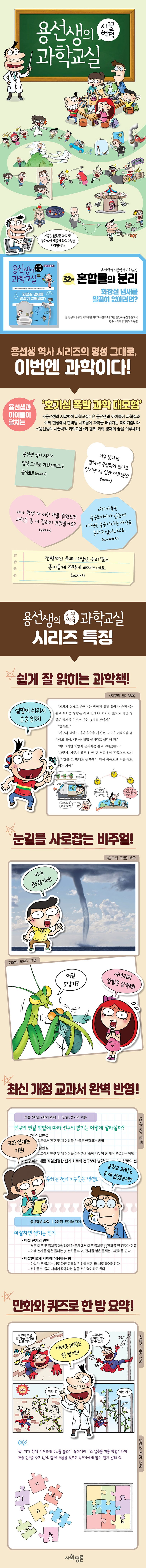 부동의 역사 베스트셀러 ‘용선생’이 새롭게 선보인 《용선생의 시끌벅적 과학교실》 시리즈 신간이 나왔습니다. 《용선생의 시끌벅적 과학교실》은 용선생과 아이들이 한바탕 시끄럽게 과학을 배워 가는 이야기입니다. 현재 아이들의 독서 습관을 고려한 쉬운 서술, 생생한 사진과 기발한 삽화로 눈길을 사로잡는 비주얼, 최신 과학 교과서를 충실히 반영한 내용 구성, 호기심을 북돋우는 소재로 풀어낸 개념과 원리 등 초등학생이 꼭 알아야 할 과학의 모든 것이 담겨 있습니다.