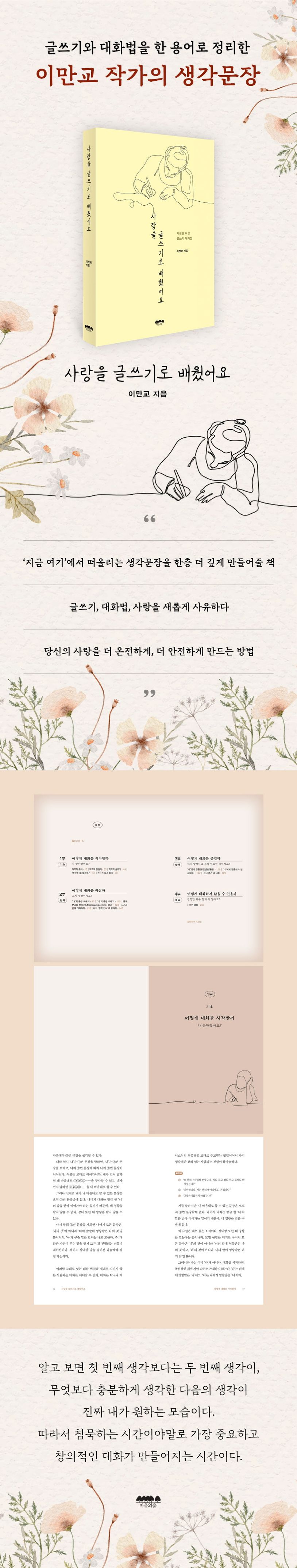 이전까지 그 누구도 글쓰기와 대화법을 한 용어로 정리할 생각은 못 했다. 현 출판 시장에는 글쓰기 책과 대화법 책이 여러 권 있지만 이 두 영역을 함께 고민한 책은 없었다. 글쓰기처럼 내 안의 문장을 말하기 전에 한 번 더 고민하고, 글쓰기처럼 내 문장의 실수를 수정한다. “사랑은 연필로 쓰세요”라는 노래 가사처럼 사랑의 실수를 미리 바로잡아보는 것이다.