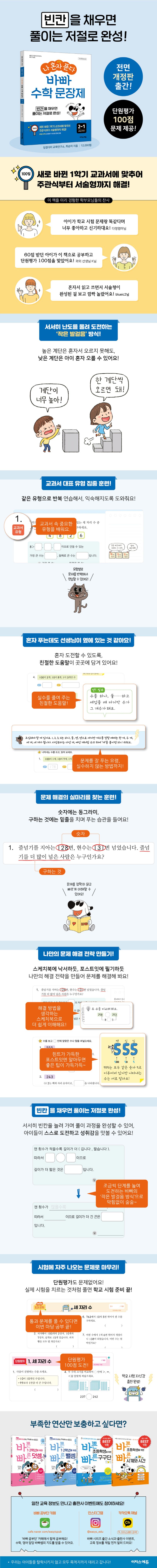 새 교육과정에 맞춘 '바빠 수학 문장제'로 수학에 대한 자신감과 실력을 탄탄히 키워 보자!