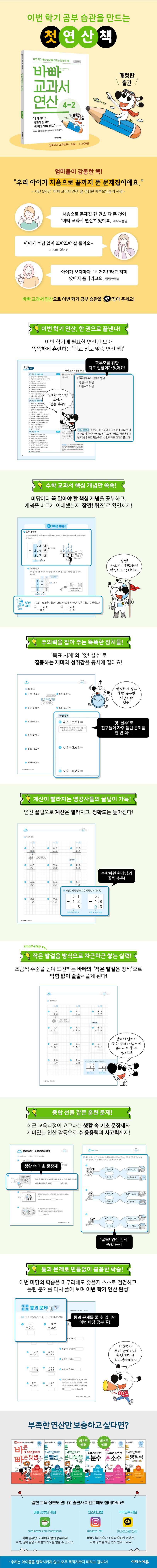 이 책을 푼 후, 학교에 가면 수학 교과서를 미리 푼 효과로 수업 시간에도, 단원평가에도 자신감이 생길 것이다! 새 교육과정에 맞춘 연산 훈련으로 수학 실력이 ‘쑤욱’ 오르는 기쁨을 만나 보자!