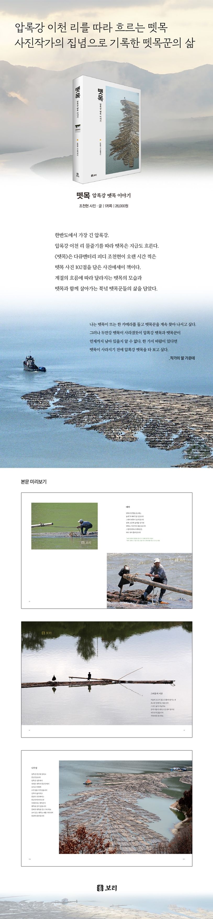 다큐멘터리 피디 조천현은 1997년부터 수백 차례 압록강과 두만강 건너에서 강의 풍경과 강 건너 사람들을 찍었다. 2004년 여름, 압록강에서 뗏목을 처음 만났고, 흐르는 뗏목을 강가에서 기다려 사진으로 담아냈다. 그 가운데 102점을 골라 사진에세이 《뗏목-압록강 뗏목 이야기》로 출간했다. 803킬로미터에 이르는 우리나라에서 가장 긴 강을 따라 흐르는 ‘뗏목’과 뗏목을 저어 가는 ‘뗏목꾼’들의 삶을 생생히 기록한 것으로, 어느 곳에서도 보기 힘든 귀중한 책이다.