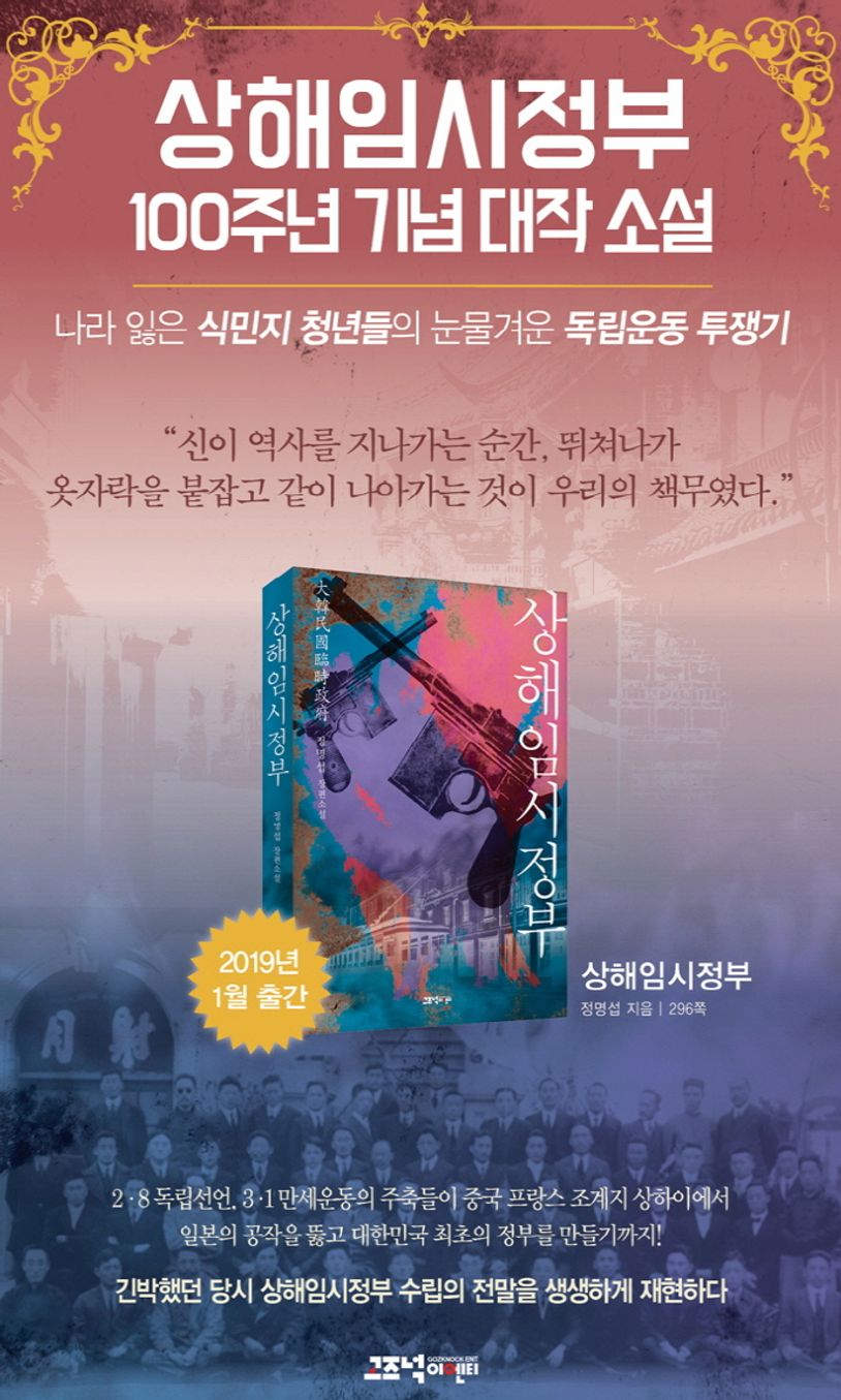 일본의 위협과 공작으로 긴박하고 위험했던 당시 상해임시정부 수립의 전말을 생생하게 재현하다! 2019년은 상해임시정부 수립 100주년 되는 해다. 3 1운동, 2 8독립선언 역시 마찬가지로 100주년을 맞이했다. 2019년 내내 상해임시정부 수립 및 3 1운동 관련 기념행사와 다양한 이벤트들이 거국적으로 열릴 예정이다. 또한 영화와 다큐멘터리, TV드라마도 관련 역사가 수차례 방영될 예정에 있다. 상해임시정부를 다룬 소설로는 『상해임시정부』가 올해 처음으로 출간되었다. 소설 『상해임시정부』에서는 일본의 협박과 위협, 방해공작을 뚫고 상해임시정부 수립의 기초를 마련하기까지 식민지 청년 독립운동가들의 활약이 집중 조명된다. 올해 단 한 권의 역사소설을 읽어야 한다면, 『상해임시정부』가 단연 첫손에 꼽힐 것이다.