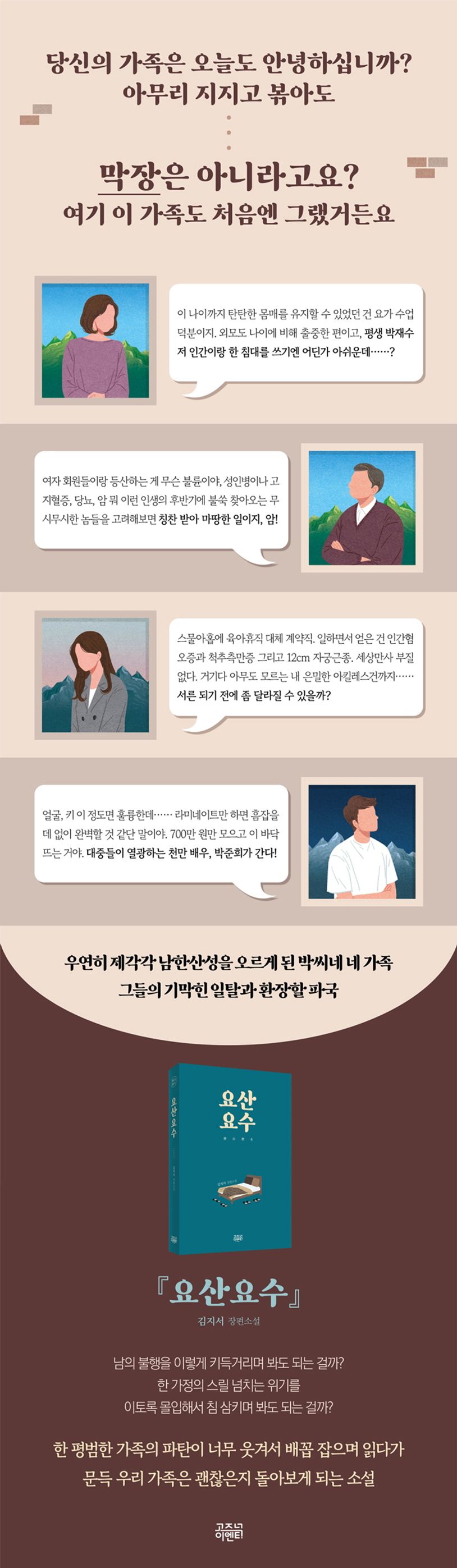 한 평범한 가족의 파탄이 너무 웃겨 배꼽 잡으며 읽다가 문득 우리 가족은 괜찮은지 돌아보게 되는 소설, 『요산요수』가 나왔다.