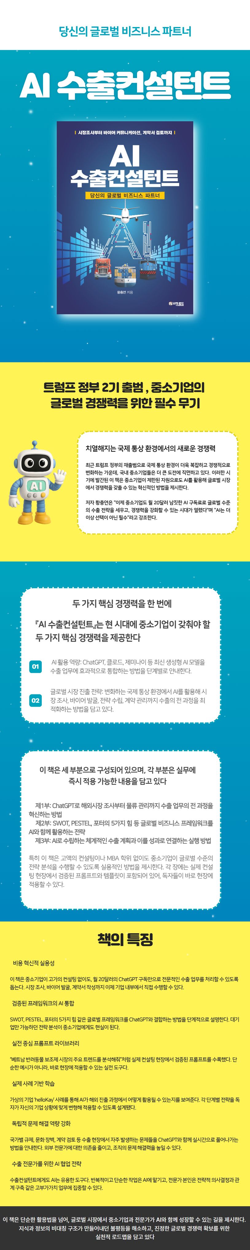 이 책은 이러한 경험과 노하우를 체계적으로 정리한 결과물로, 수출 초보자부터 현업 전문가까지 모두에게 실질적인 도움을 주는 AI 기반 수출 실무의 결정판입니다.