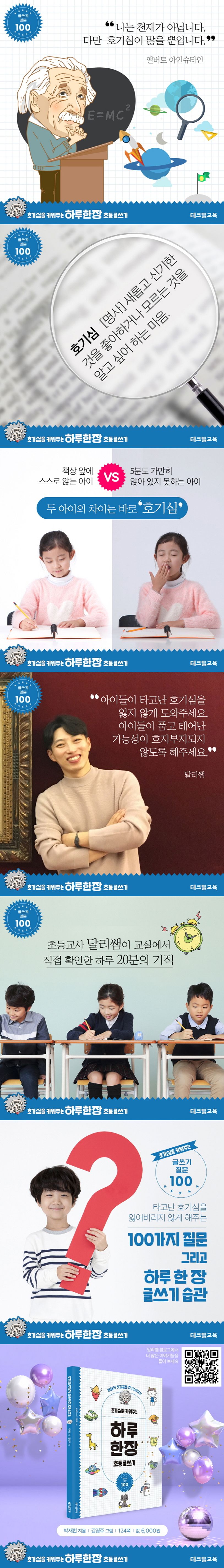 박재찬 선생님이 학생들과 함께 하루 20분씩 꾸준히 글을 쓰고 놀라운 성과를 거둔 『호기심을 키워주는 하루 한장 초등 글쓰기』. 특히, 초등 4, 5, 6학년 학생들에게 유익합니다.