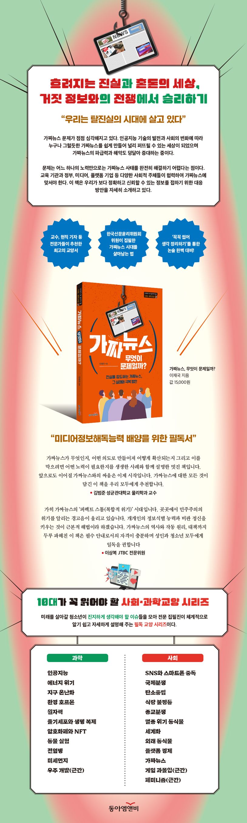 여기서 중요한 사실은 어느 하나의 노력만으로는 가짜뉴스 문제를 완전히 해결하기 어렵다는 점이다. 교육 기관과 정부, 미디어, 플랫폼 기업 등 다양한 사회적 주체들이 협력하여 가짜뉴스에 맞서야 한다. 이 책은 가짜뉴스의 확산을 억제하고 이용자들이 보다 정확하고 신뢰할 수 있는 정보를 접하도록 하기 위해 필요한 대응 방안을 자세히 소개하고 있다.
