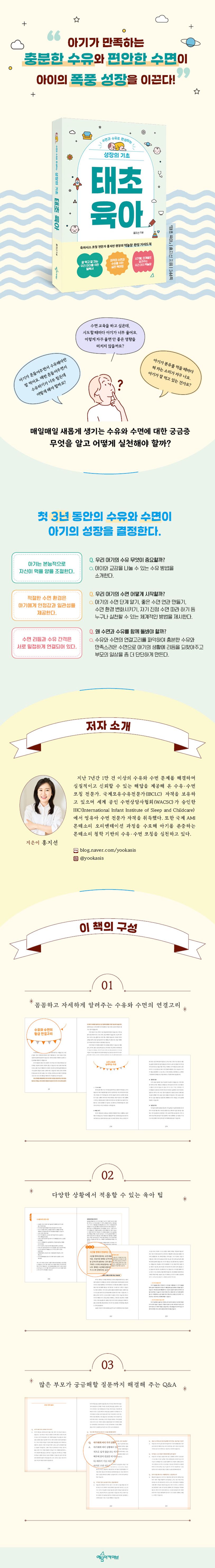 PART1행복한육아의비밀1.행복한육아,그첫걸음평생을좌우하는첫3년의발달엄마가되면서느끼는3가지감정아기에게평균은없다엄마가내아이만의육아전문가2.아기의하루를설계하는생체리듬의마법수유와수면의황금연결고리아기에게도생체리듬이있다양육방식은아기의생체리듬에영향을준다어긋난생체리듬이수면문제를부른다어긋난생체리듬이수유문제를부른다PART2건강한수유의비밀1.수유의첫걸음언제먹일얼마나먹일까2.아기의발달단계에따른수유의변화아기의발달에따라수유기술도달라져야한다아기의반사행동오해하지않기배고픔과배부름시간과상황파악하기수유Q&APART3모유수유로이어지는엄마와아이의첫교감1.모유수유의첫걸음왜모유수유를하는가옥시토신의힘생후첫주,모유수유는이렇게생후첫주,모유수유확인방법2.모유수유첫40일의기적40일동안의모유수유성공적인모유수유자세PART4아기의건강을지키는분유수유성공전략1.분유수유의첫걸음젖병수유자세가중요한이유아기에게딱맞는젖병과젖꼭지를선택하는방법분유,도대체어떤것을먹여야할까트림,꼭시켜야할까2.분유수유에서조심해야할것수유할때흔히저지르는실수아기의과식징후왜충분히먹지못할까젖병수유를불편해하는우리아기,어떻게해야할까PART5수유거부극복을위한가이드1.수유를거부하는우리아기수유거부란무엇인가수유거부,어떻게발생하는가아기는스스로수유량을결정할수있다2.수유거부를극복하기위한방법아기가성장하면수유방법도달라져야한다POINT잘때만수유하는아기수유중아기의마음을알아보는3가지방법수유거부,어떻게해결할수있을까POINT아기의신호에어떻게반응해야할까11가지강령수유거부해결과정,어떻게변화해가는가솔루션이효과가없다면POINT수유를위한권장사항수유거부Q&APART6편안한수면의비밀1.우리아기꿀잠을위한첫단계수면교육이란무엇인가수면의과학,아기수면을이해하자수면이부족하면어떻게될까2.수면교육이필요할때수면교육정말안전할까아기울음속에숨겨진메시지수면교육에실패하는이유3.수면교육필수가이드꿀잠을위한최적의수면환경스스로잠드는아기의수면연관잠투정하는아기의미세한신호알아차리기POINT아기의졸린신호에대응하는방법무의식과의식사이,수면의식아기의꿀잠을위한핵심원칙자기진정수면교육POINT수면교육성공의열쇠수면교육,이렇게하면된다수면교육Q&A