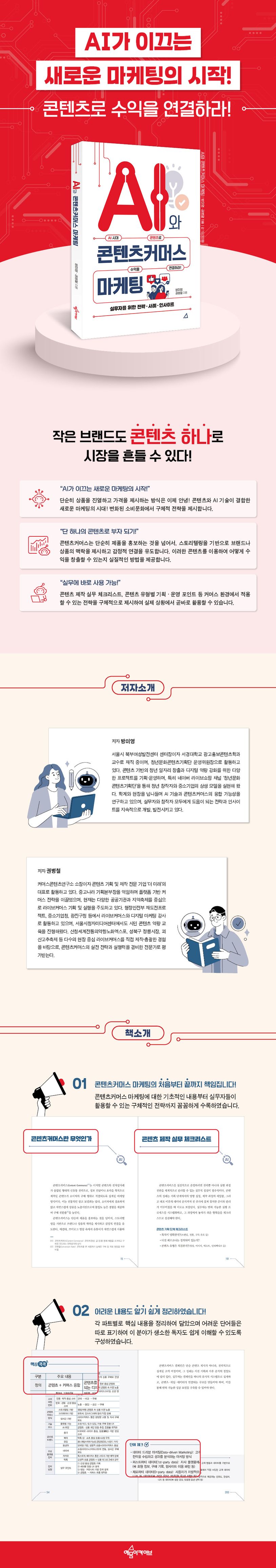 생성형 AI 기술이 일상화되는 지금, 마케팅의 패러다임은 빠르게 진화하고 있다. 특히 ‘콘텐츠커머스’는 단순한 제품 판매를 넘어, 브랜드 스토리텔링과 소비자 참여를 유도하는 핵심 전략으로 자리잡고 있다. 이 책은 AI 기술과 콘텐츠커머스의 융합이 어떻게 마케팅 현장을 바꾸고 있는지를 체계적으로 분석하고, 실무에 바로 적용할 수 있는 전략과 사례, 인사이트를 제공한다.
