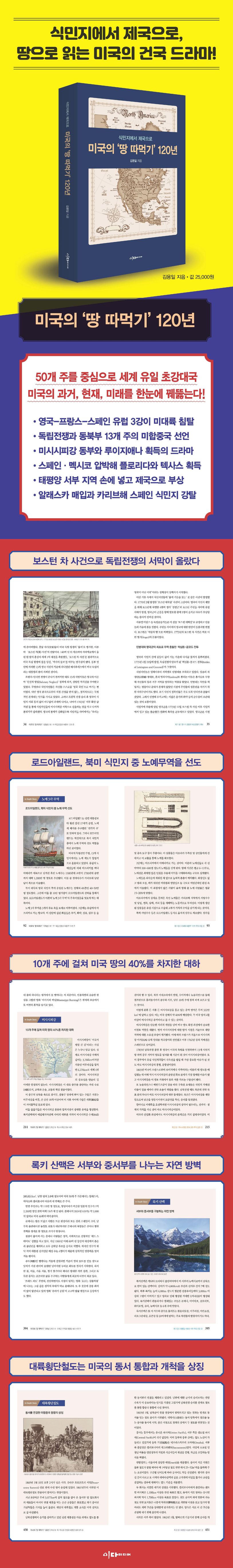 미국의 독립전쟁 태동에서부터 19세기 말 필리핀과 쿠바, 괌 등 해외 영토들을 획득해 나가는 과정까지 120여 년에 걸친 미국의 영토사를 개관했다.