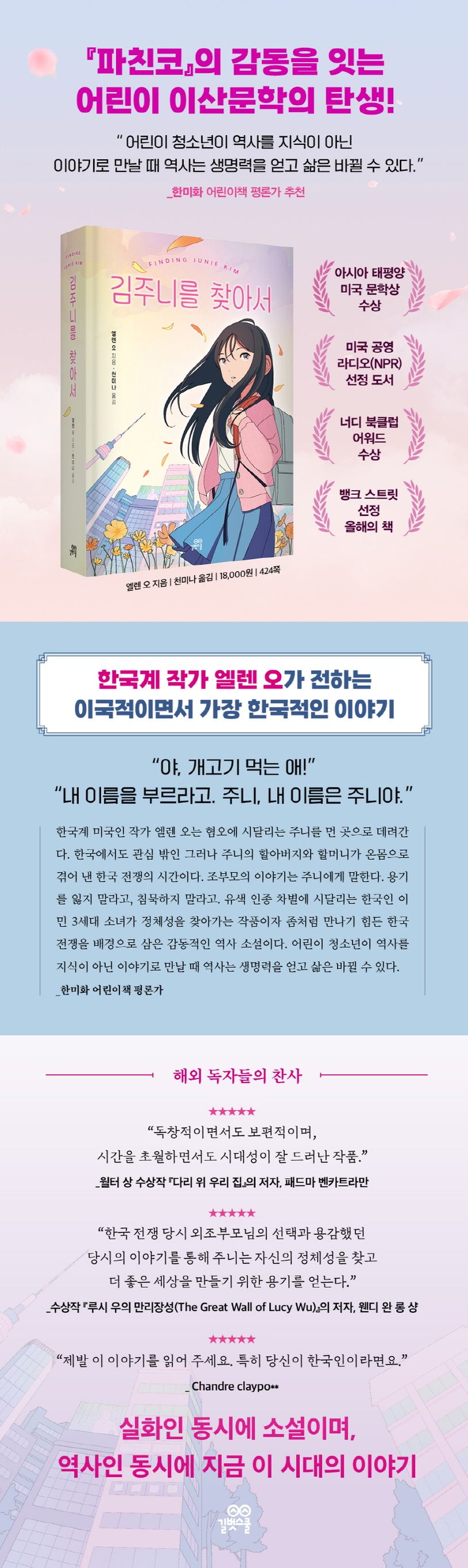한편 학교 숙제로 전쟁 세대인 할머니 할아버지를 인터뷰하게 된 주니는 두 분의 한국 전쟁 경험담을 듣게 된다. 주니와 같은 나이에 굳은 의지로 가족을 지켜낸 할머니, 두려움 속에서도 따뜻한 마음을 잃지 않고 친구 편에 섰던 할아버지…… 현재 자신의 상황과 닮은 과거 조부모의 전쟁 이야기를 통해 주니는 더 나은 미래를 위한 선택을 준비한다. 이제 주니는 침묵이 아닌 목소리 내는 법을 배운다.