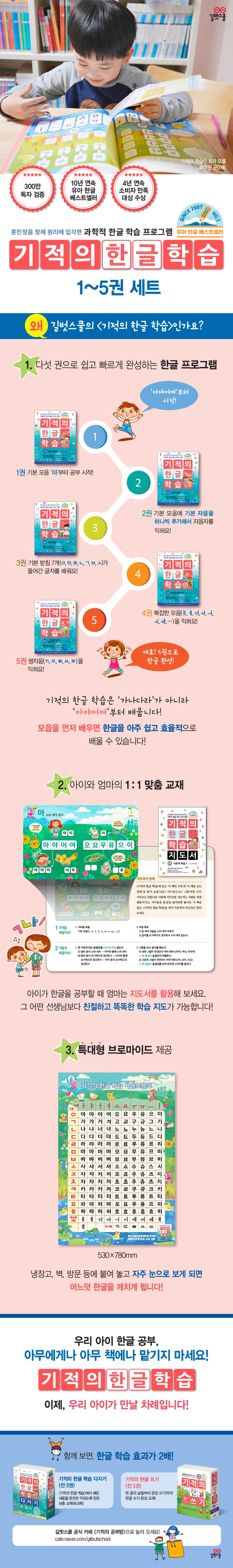 〈기적의 한글 학습 다지기〉는 본서인 〈기적의 한글 학습〉에서 배운 내용을 완전히 익히도록 만든 보충 교재다. 〈기적의 한글 학습〉은 한글의 창제 원리, 본연의 방법을 채택하고 있으며 아이의 언어 능력 발달을 신중하게 고려하여 설계하였다. 본서와 다지기 모두 5권, 35단계로 동일하게 구성되어 있으므로 〈기적의 한글 학습〉으로 기초를 쌓고 해당 단계의 〈기적의 한글 학습 다지기〉를 보는 순서를 권한다.