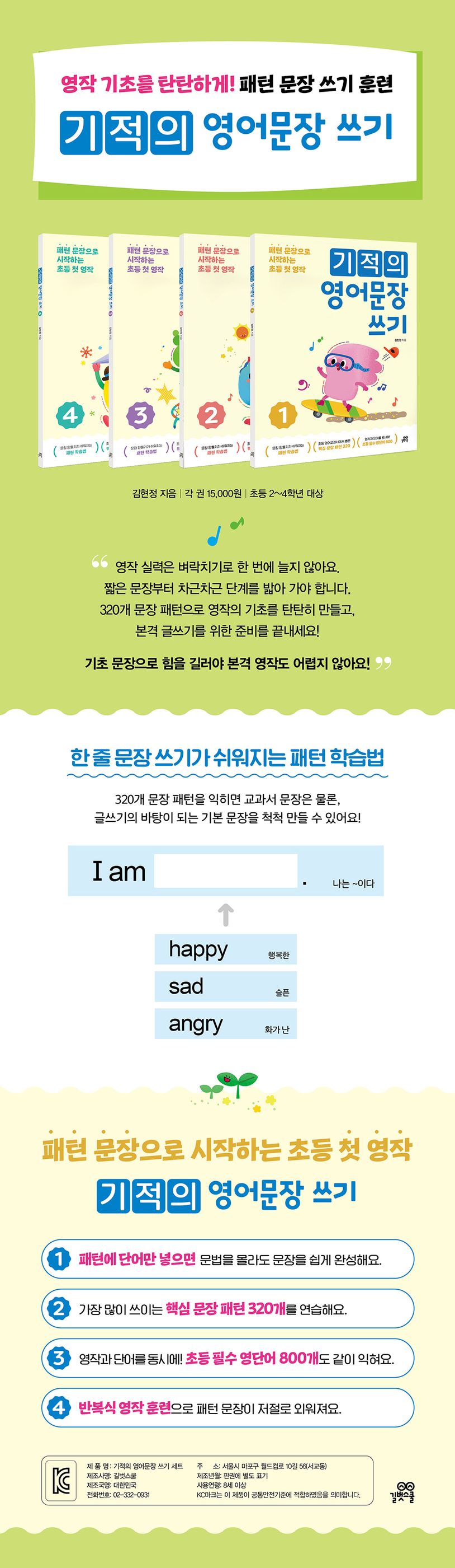 기적의 영어문장 쓰기 세트 (패턴 문장으로 시작하는 초등 첫 영작 | 개정판 | 전 4권)