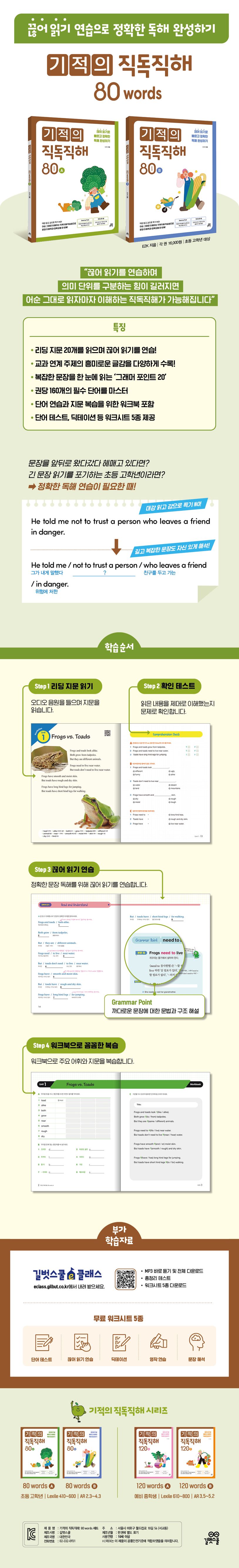기적의 직독직해 80 words 세트 (끊어 읽기로 빠르고 정확한 독해 완성하기 | 개정판 | 전 2권)