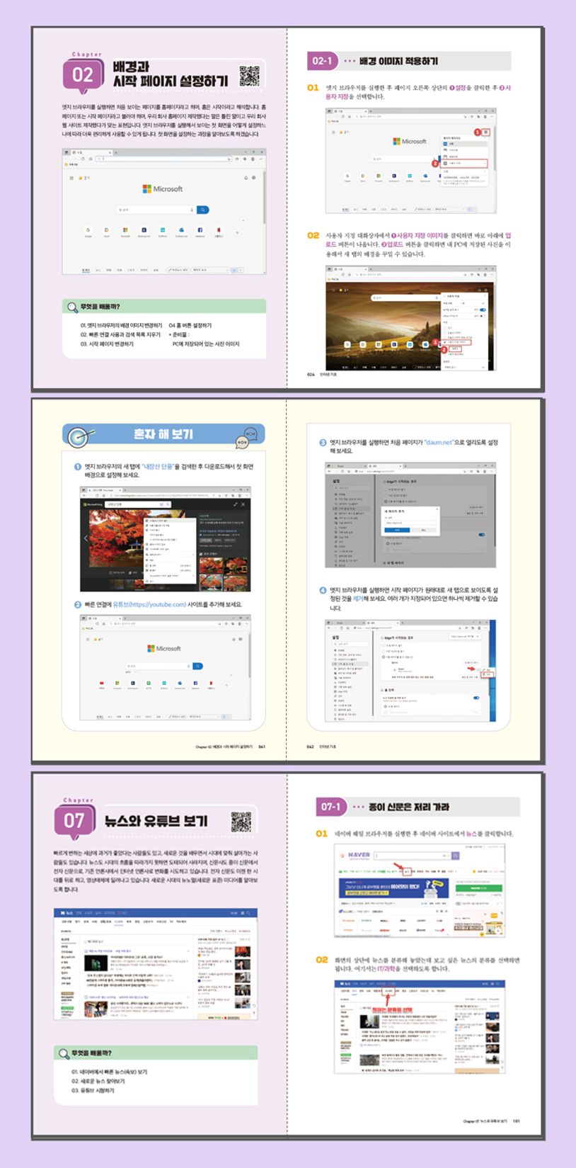 능력향상 시리즈는 컴퓨터를 잘 다루지 못하는 일반인, 컴퓨터를 처음 접하는 어르신들을 위해 만들어졌습니다. 실생활에 바로 적용할 수 있는 실용적인 예제를 중심으로 쉽고 자세하게 설명하였으며, 사진 이미지에 따라하기 번호나 설명글을 첨부하여 설명대로 따라함에 어려움이 없도록 만들었습니다. 글자와 해당 이미지도 크게 하여 눈이 좋지 않은 어르신들도 보시기에 불편함이 없도록 하였습니다. 또한 각 챕터마다 QR코드를 삽입해 동영상으로도 강의를 들을 수 있어 책 한 권으로 혼자 연습하기에 좋습니다.