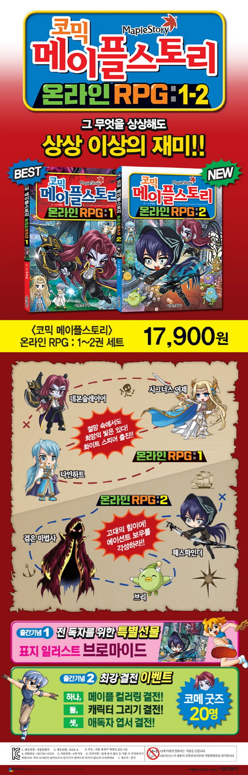 게임 속 세상이 그대로 펼쳐지는 [코믹 메이플스토리 온라인 RPG] 시리즈는 검은 마법사의 등장으로 이야기가 더욱 풍성해진 게임 [메이플스토리]의 설정과 결투, 미션 수행들의 과정을 담고 있으며, 1,850만 부 돌파 신화의 [코믹 메이플스토리 오프라인 RPG] 서정은 작가의 그림 연출력으로 한층 더 재미있고 생생하게 풀어냈습니다.