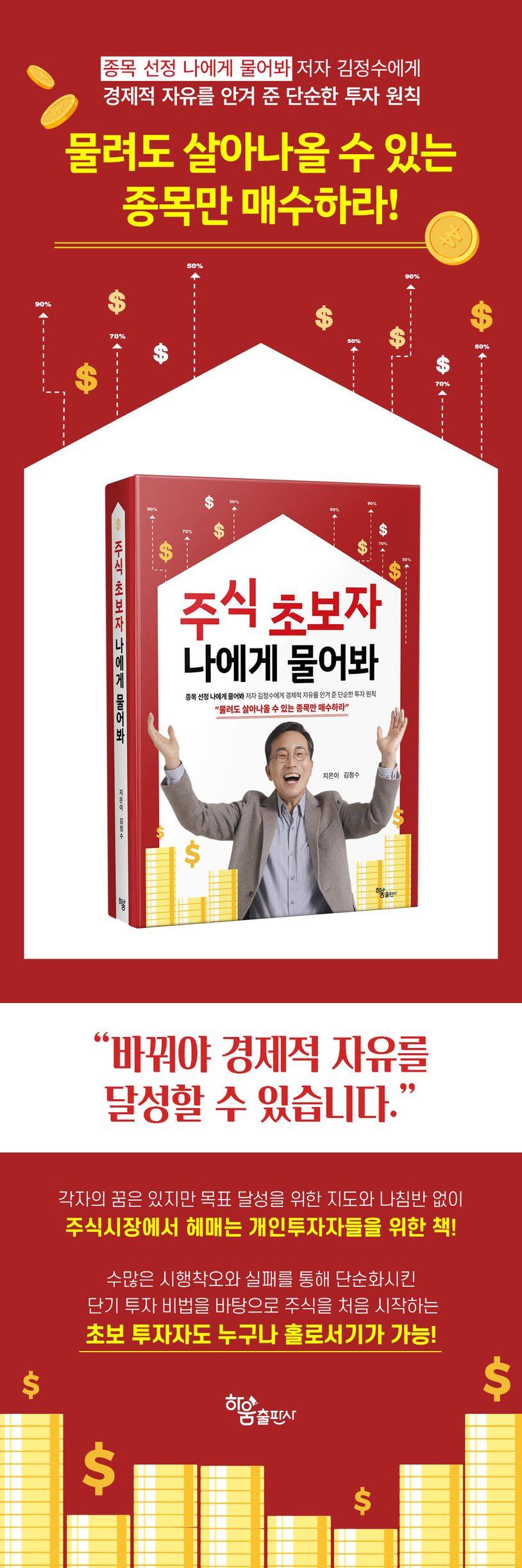 저자는 세 권의 집필 활동과 강의를 통해 많은 개인 투자자와 교류하며 개인 투자자들의 투자 실상이 어떤지 깨달았고 문제점들을 파악했다. 그리고 그런 문제점들을 보완하는 주식 초보자들을 위한 책이 필요함을 절실히 실감했다.