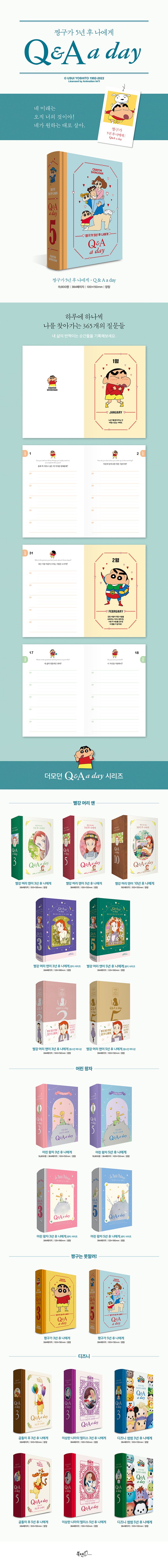 1월 1일을 시작하며 “새해 소원으로 어떤 것을 빌었어?(What did you wish for the New Year?)”부터 12월 31일을 마무리하며 “너의 버킷리스트 10가지를 써봐.( Write down your ten bucket lists.)”까지, 매일매일 짱구가 던지는 질문에 답을 기록해나가다 보면 무심코 흘려보낼 뻔했던 우리 삶의 반짝거리는 순간들을 기록하고 기억하게 될 것입니다.
