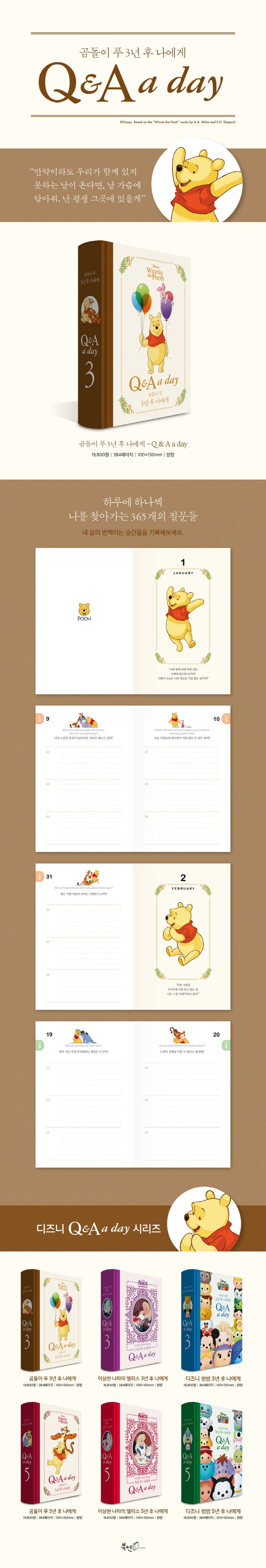 어떤 상황에서도 행복을 찾아내고야 마는 곰돌이 푸의 질문들로 구성된 다이어리, 《디즈니 곰돌이 푸 3년 후 나에게: Q&A a day》가 출간되었다. 365개의 질문들은 한글과 영문으로 쓰여 있고, 친숙한 디즈니 애니메이션 속 캐릭터와 일러스트로 예쁘게 꾸며져 있다.