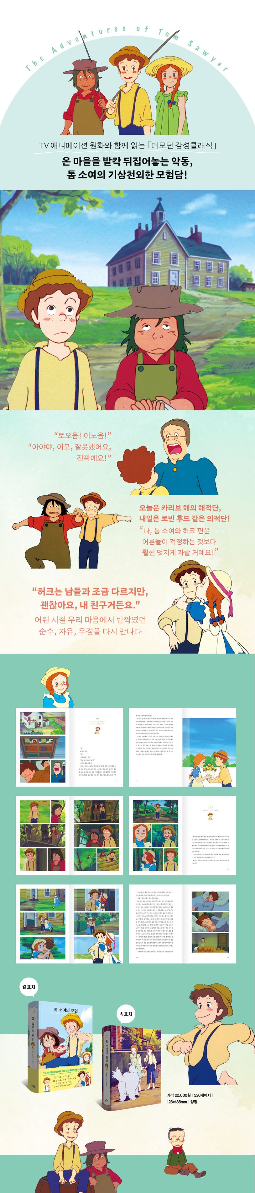 TV애니메이션 원화로 읽는 더모던 감성 클래식 5권. 《톰 소여의 모험》은 헤밍웨이가 “미국 현대문학을 탄생시켰다”라고 극찬하며 존경했던 작가 마크 트웨인의 소설로, 《허클베리 핀의 모험》의 전편 격이다. 역대급 개구쟁이 톰 소여와 그의 친구 허클베리 핀의 엉뚱하고 신나는 모험담이 종횡무진 펼쳐진다.