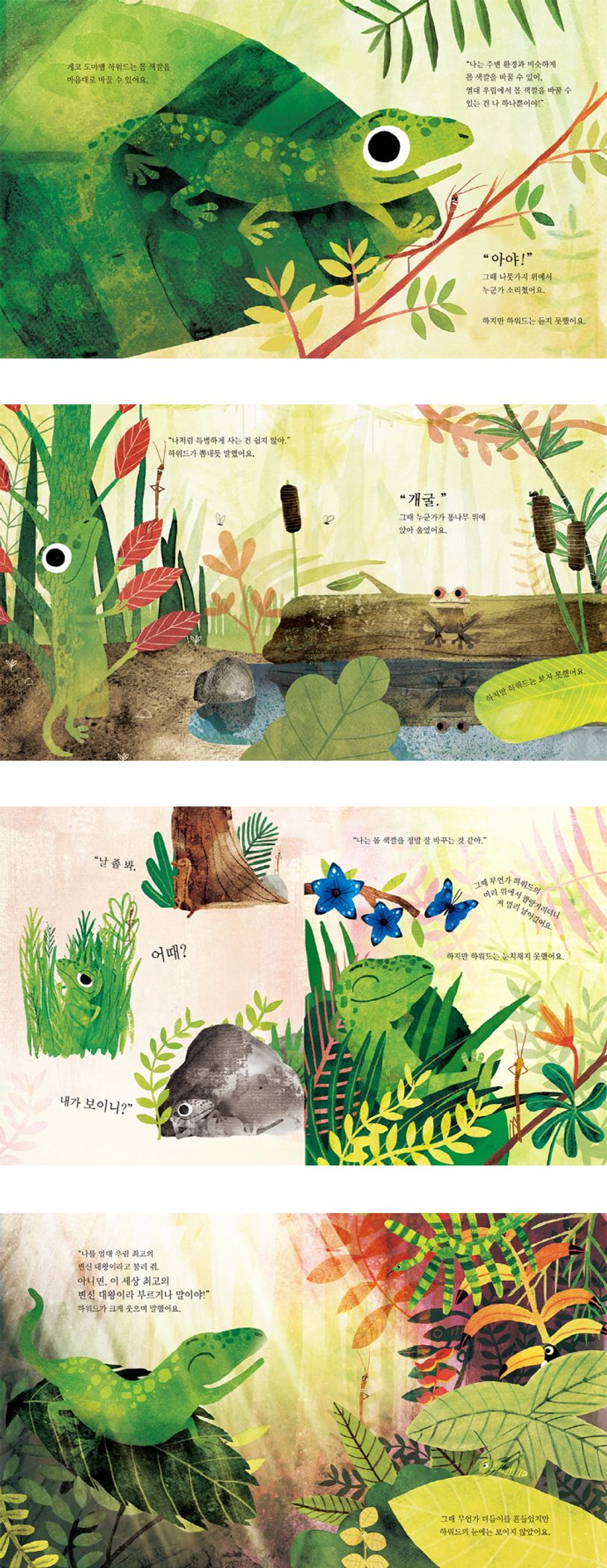 게코 도마뱀 하워드는 몸 색깔을 마음대로 바꿀 수 있어요. 하워드는 열대 우림에서 몸 색깔을 바꿀 수 있는 건 본인 하나뿐이라고 생각했어요. 하워드 주변에 누군가 있었지만 하워드는 전혀 알지 못했어요. 또 하워드는 자신이 특별한 동물이라고 여겼어요. 자신보다 특별한 동물은 어디에도 없다고 생각했지요. 하워드의 생각처럼 정말 하워드가 열대 우림에서 장 특별한 동물일까요?