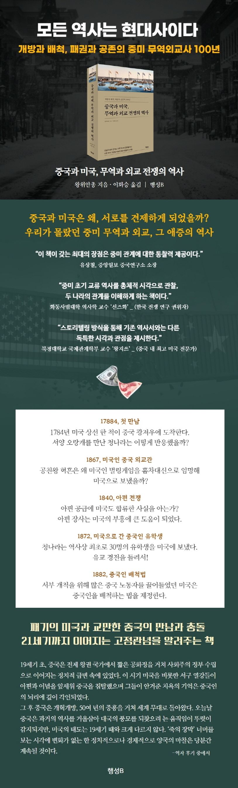 이 책은 중국과 미국의 만남과 충돌을 여러 사건을 통해 보여줌은 물론 동아시아 역사의 거대한 변화도 짚어낸다. 중미 갈등의 본질을 파악하고 새로운 길을 모색하는 데 커다란 실마리를 제공할 것이다.