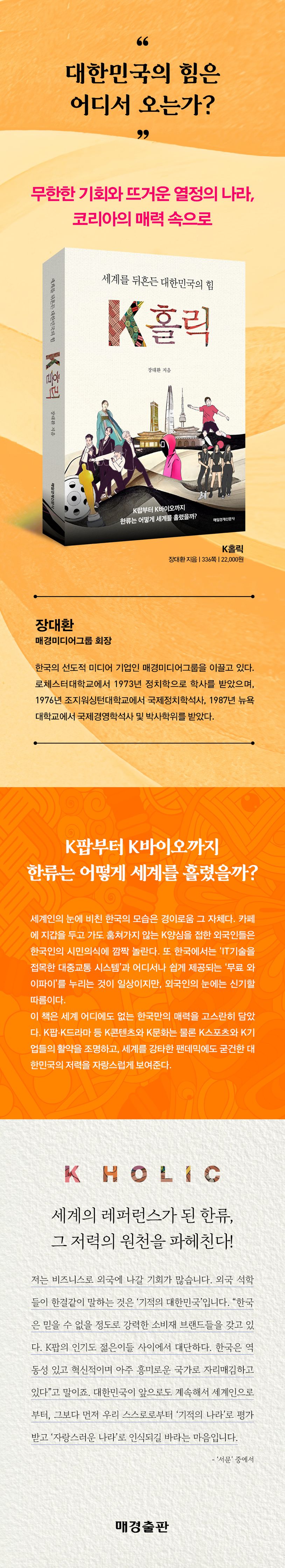 세계에서 가장 역동적인 나라, 대한민국에 대한 흥미롭고 의미 있는 통찰로 가득한 책,《K홀릭》이 출간됐다.