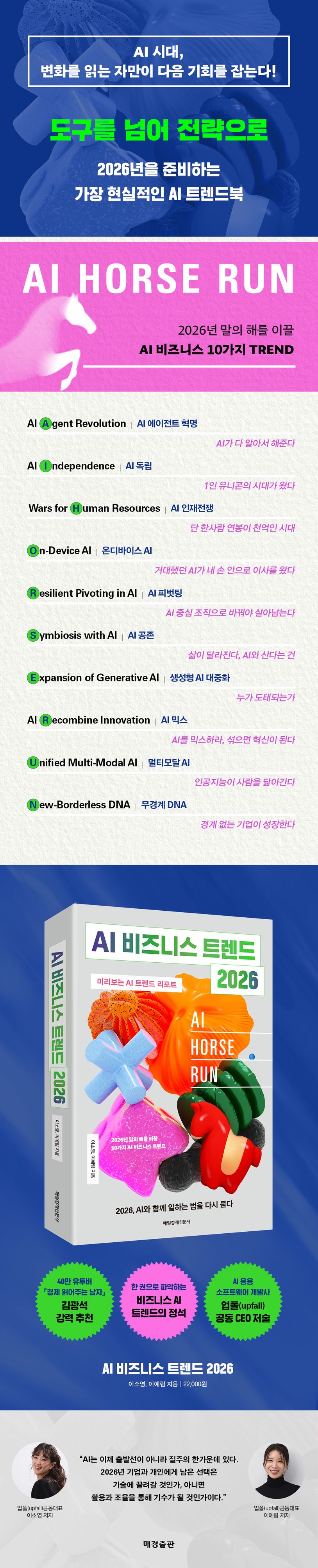AI 시대의 변화를 읽고 싶지만 어디서부터 시작해야 할지 막막한 리더와 실무자에게, 이 책은 비즈니스 생존을 위한 가장 현실적인 트렌드맵이 될 것이다.