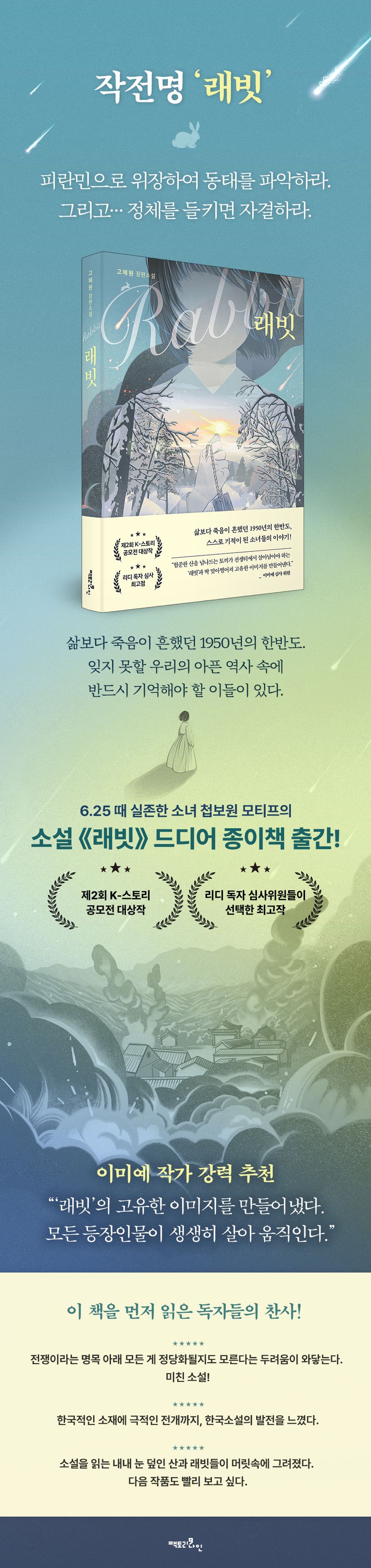 6.25에 실존했던 소녀 첩보원을 모티프로 한 제2회 K-스토리 공모전 대상작 《래빗》