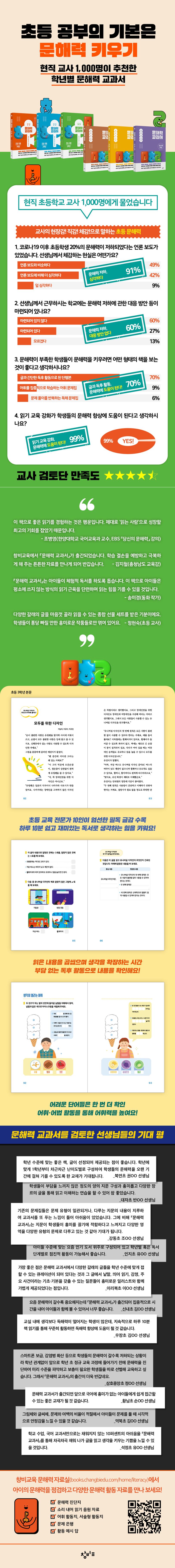 『문해력 교과서』는 1,000명의 교사 자문단이 추천하고, EBS 「당신의 문해력」에서 강의한 조병영 교수, 김지철 충청남도 교육감 등의 추천을 받았다. 이 책을 통해 어린이들이 가벼운 마음으로 즐기면서 초등 공부의 기본인 문해력을 키우기 바란다. 『문해력 교과서』 초등 국어는 1~6학년 총 6권으로 구성되었으며, 초등 사회·과학이 곧 출시될 예정이다.