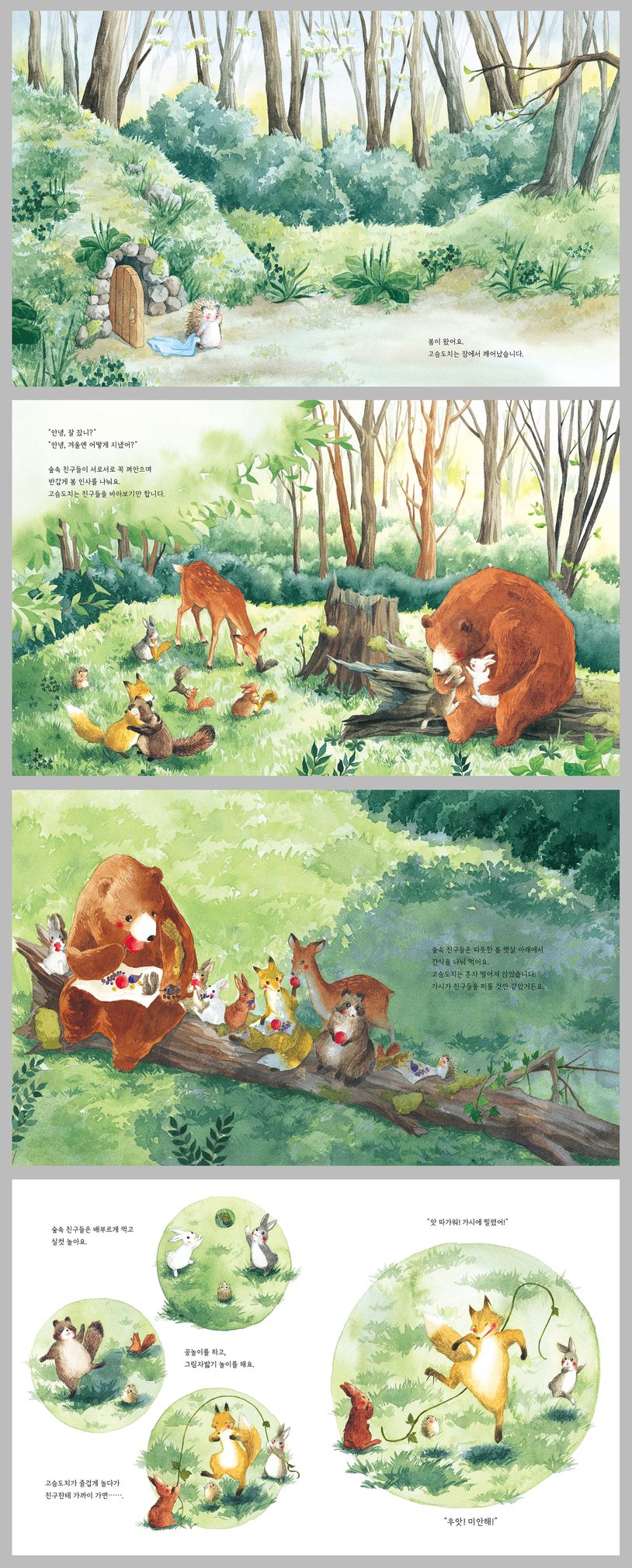 친구에게 좋은 것은 주고 싶은 마음은 숲속 친구들에게 멋진 선물이 돼요. 찬란한 봄을 더욱 환하게 빛나게 한 고슴도치의 진짜 선물은 무엇이었을까요?