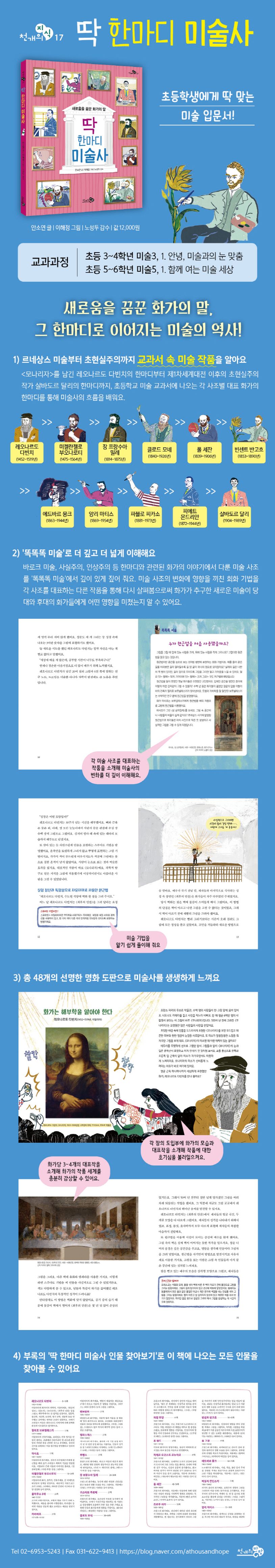또 미술사의 변화를 불러온 시대 배경과 새로운 회화 기법의 창조, 미술 재료의 발전 등을 폭넓게 다루어 명화에 담긴 의미를 깊이 있게 들여다볼 수 있도록 했어요. 화가와 미술 경향을 이해하는 데 꼭 필요한 유명 도판을 적재적소에 제공해 좀 더 쉽게 내용을 이해할 수 있어요. 부록으로 '딱 한마디 미술사 인물 찾아보기'를 실어 이 책에 나오는 모든 인물을 찾아볼 수 있도록 하였어요.
