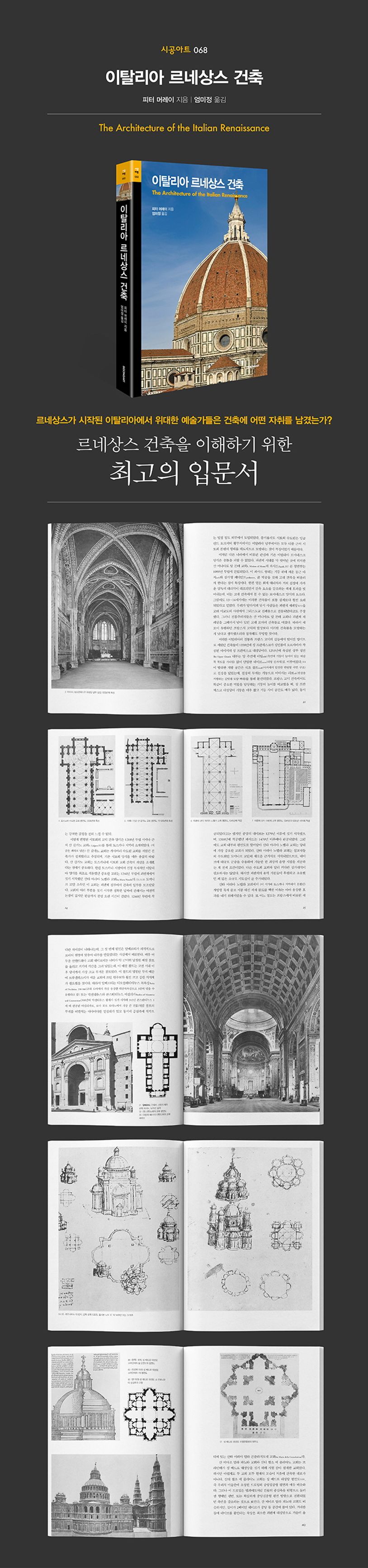 피터 머레이의 『이탈리아 르네상스 건축』은 르네상스의 토양이 되었던 중세 말기 토스카나의 로마네스크와 고딕 교회로부터 17세기 초에 마니에리스모 양식으로 지어진 빌라까지 르네상스 건축의 종교 건축물과 세속 건축물을 아우르는 입문서다. 그간 르네상스 예술을 다루는 개설서와 대중서에서 건축의 비중이 회화와 조각에 비해 적은 경우가 많았기에 이 책의 출간은 르네상스 건축을 전반적으로 이해할 수 있는 좋은 기회가 될 것이다. 르네상스 미술과 건축에 관해 여러 저서를 남긴 저자의 르네상스 건축물과 건축가들에 관한 상세한 해설은 이 책의 가장 두드러진 장점이다. 피렌체, 로마, 밀라노, 베네치아는 물론 만토바, 비첸차 같은 상대적으로 덜 알려진 소도시까지, 이 책에서 다뤄지는 르네상스 시대 건축물의 위치를 구글 지도로 찾아가면서 팬데믹 시대에 ‘랜선 이탈리아 여행’을 경험할 수 있다는 점은 이 책이 선사하는 또 다른 선물이다.