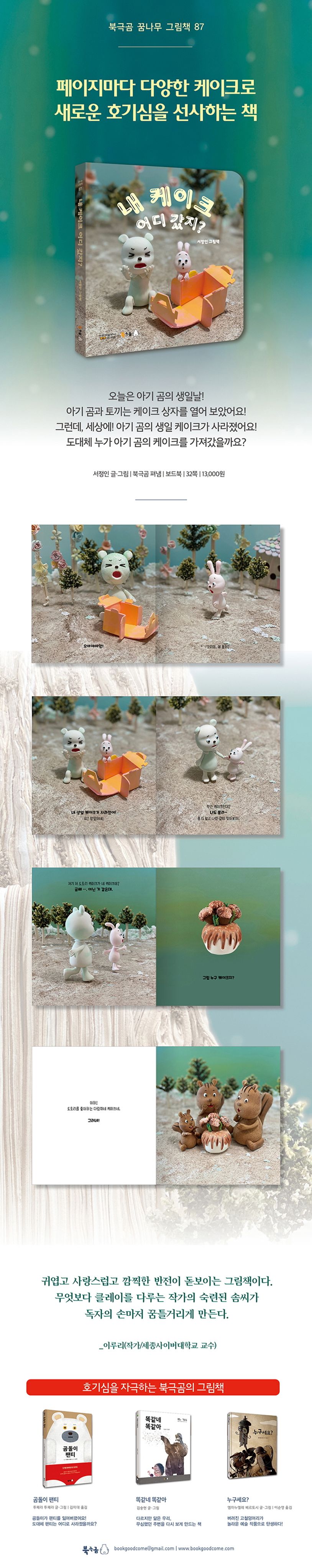 오늘은 아기 곰의 생일날! 아기 곰과 토끼는 케이크 상자를 열어 보았어요! 그런데, 세상에! 아기 곰의 생일 케이크가 사라졌어요! 도대체 누가 아기 곰의 케이크를 가져갔을까요?