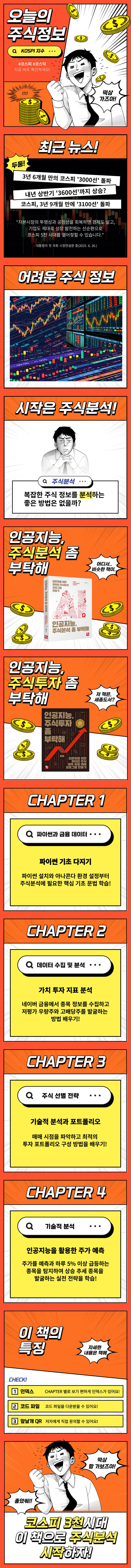 이 책은 2024년 세종도서로 선정된 『인공지능, 주식투자 좀 부탁해』의 후속작이지만, 독자들이 전작보다 먼저 읽어야 할 책입니다. 변동하는 금융시장의 복잡성을 효과적으로 이해하고 분석할 수 있는 실용적인 도구를 제공하기 때문입니다.