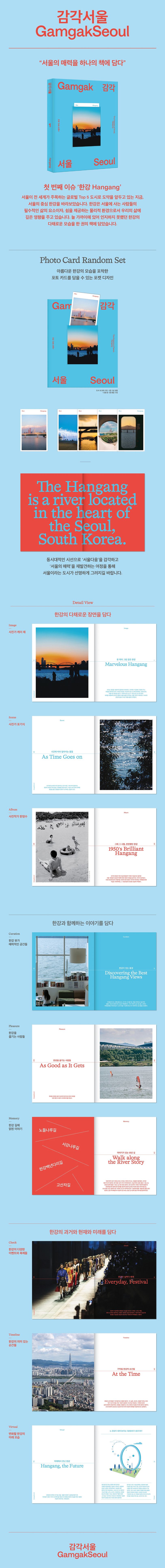 책의 첫 장을 펼치기 시작해 마지막 장을 덮는 순간, '서울다움'을 감각하고, '서울의 매력'을 하나씩 재발견하는 여정이 되길 바랍니다. 막연하게만 느껴지던 서울이라는 도시가 보다 선명하게 그려지는 것이 본 프로젝트의 목적입니다.