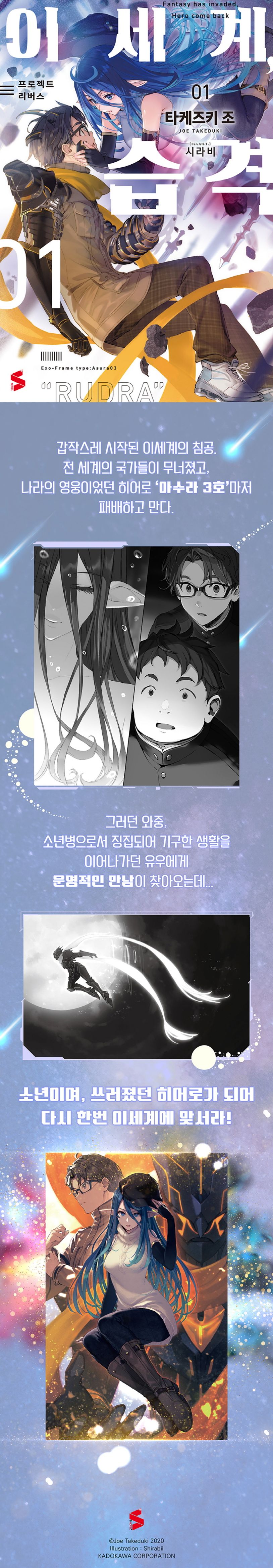 세계를 구하는 것은 언제나 히어로이다. 별안간 현대사회에 나타난 포털을 통해 이세계 문명이 인류에 침공을 개시한다. 드래곤이 날아다니고 대마법사가 습격하는 세계로 변모한 지구. 중학생 이치노세 유우는 국가 프로젝트의 소년 종사자로서 국방군 관할의 나노테크놀로지 연구소에 동원된다. 그는 운명이 인도하는 대로 과거 국방의 중추였던 인간형 전투 기계 ‘아수라프레임 3호’의 계승자로 선택받는다. 그것은 ‘장착자 3호’라는 애칭으로 알려져 있으며 일본에 평화를 가져다주는 구세주라며 굿즈화, 영상화도 될 만큼 사회현상이 될 정도로 인기가 많다. 어른도 아이도 동경하는 그는 말 그대로 히어로였다--.