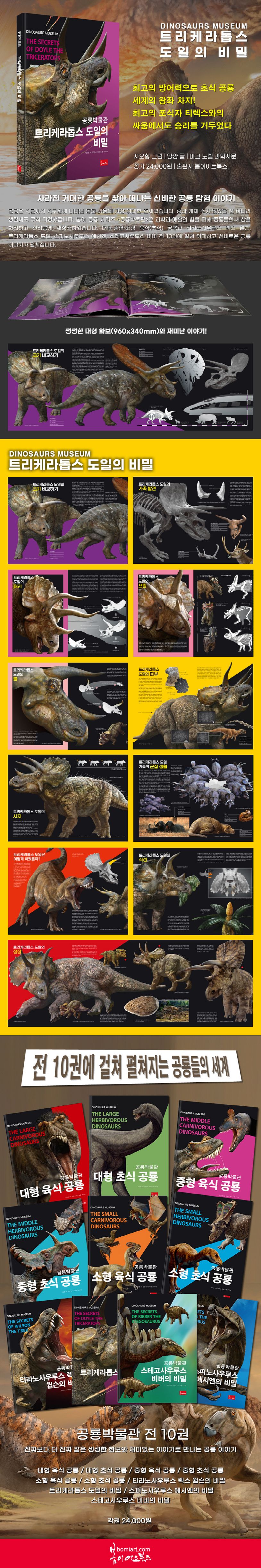 공룡은 지금까지 지구상에 나타난 동물 가운데 가장 위대한 존재였습니다. 종과 개체 수가 많았을 뿐 아니라 생김새도 무척 다양했답니다. 봄이 공룡 시리즈 〈공룡박물관〉은 과학과 예술의 힘을 더해 공룡들의 세상을 화려하고 신비롭게 재창조하였습니다. 대형·중형·소형 육식(초식) 공룡과 티라노사우루스 렉스 윌슨, 트리케라톱스 도일, 스피노사우루스 에시엔, 스테고사우루스 비버 전 10권에 걸쳐 위대하고 신비로운 공룡 이야기가 펼쳐집니다.