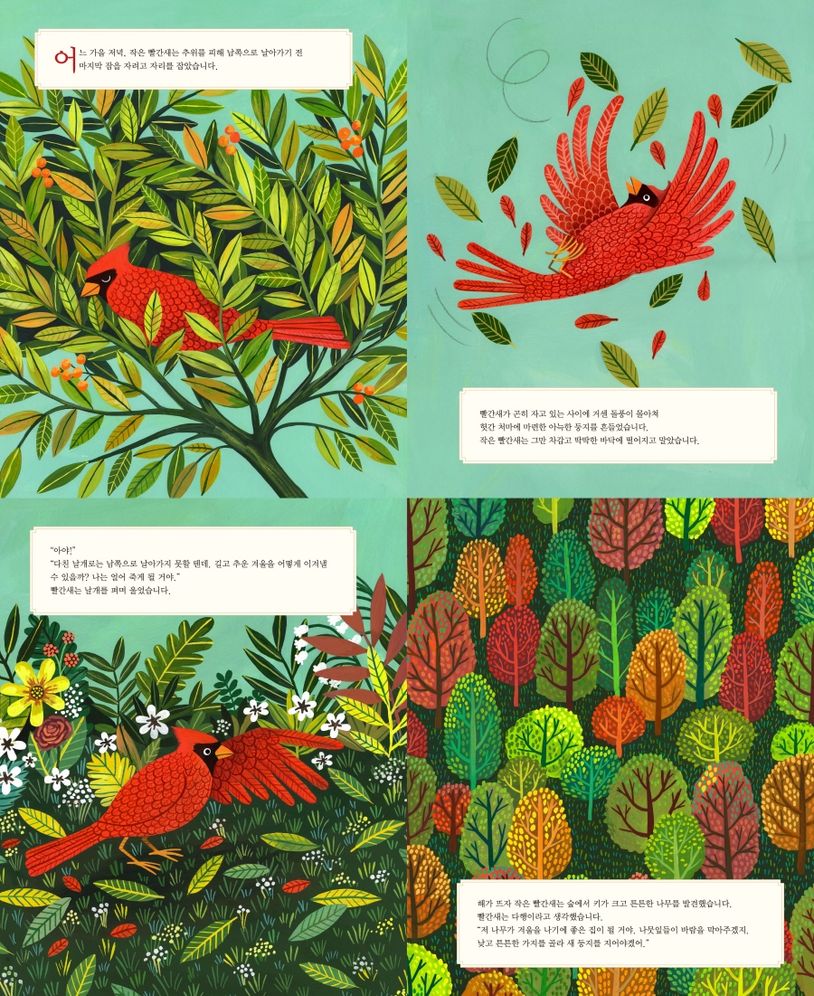 작은 빨간새는 날개를 다쳐서 남쪽으로 갈 수 없었지요.
