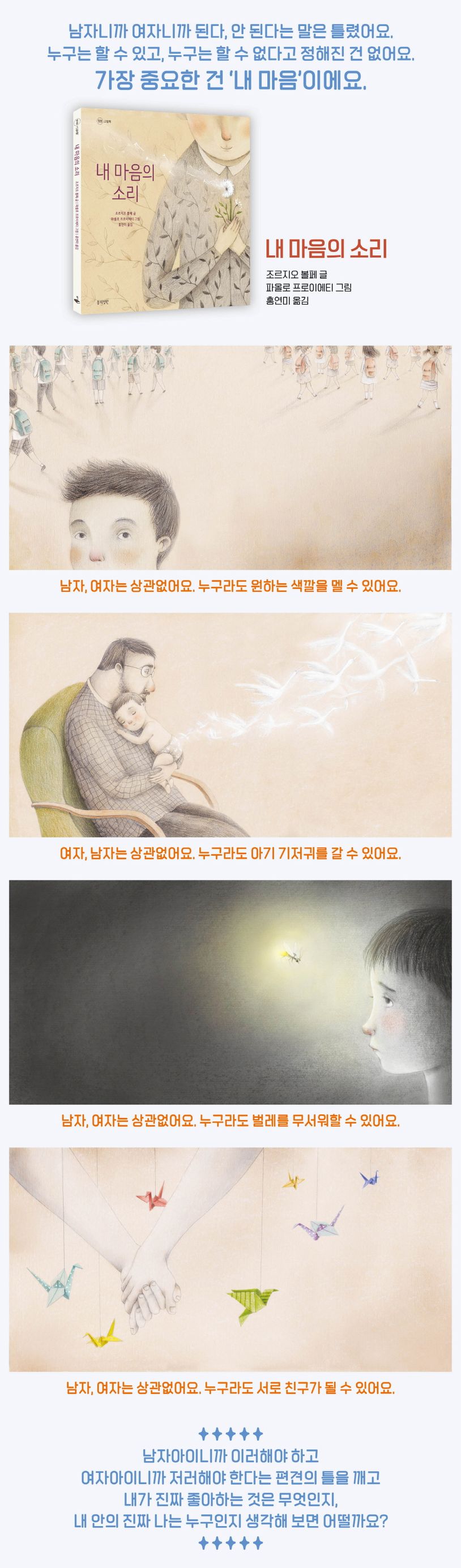한 그릇의 음식은 여러 재료와 성분들이 어우러져 맛을 낸다. 사람이라는 존재도 다양한 성분들이 어우러져 저마다의 특성을 지닌 ‘나’를 만들어 낸다. 그것이 바로 나만이 가질 수 있는 정체성이다. 같은 음식이라도 저마다 맛이 다른 것처럼 우리 역시 저마다 특별한 색깔을 지닌 이유이다. 그렇기에 자신이 주위의 친구들과 좋아하는 게 다르다고, 궁금한 게 다르다고, 하고 싶은 게 다르다고 표현하기를 두려워해서는 안 된다. 언제라도 누구에게라도 자신이 진짜 원하는 것이 무엇인지를 당당히 말할 수 있어야 한다. 그러기 위해선 늘 내 마음의 소리에 귀를 기울여야 한다. 그것이 진짜 ‘나’이기 때문이다. 자신의 마음을 소중하게 듣는 사람은 역시 다른 사람의 마음의 소리에도 귀를 기울일 줄 알 것이다. 그리고 그런 사람은 “너는 남자가 아니라 여자야!” “너는 여자가 아니라 남자야!” “우리랑 다른 너는 이상해.”라는 편견의 틀에 갇히지 않을 것이다.