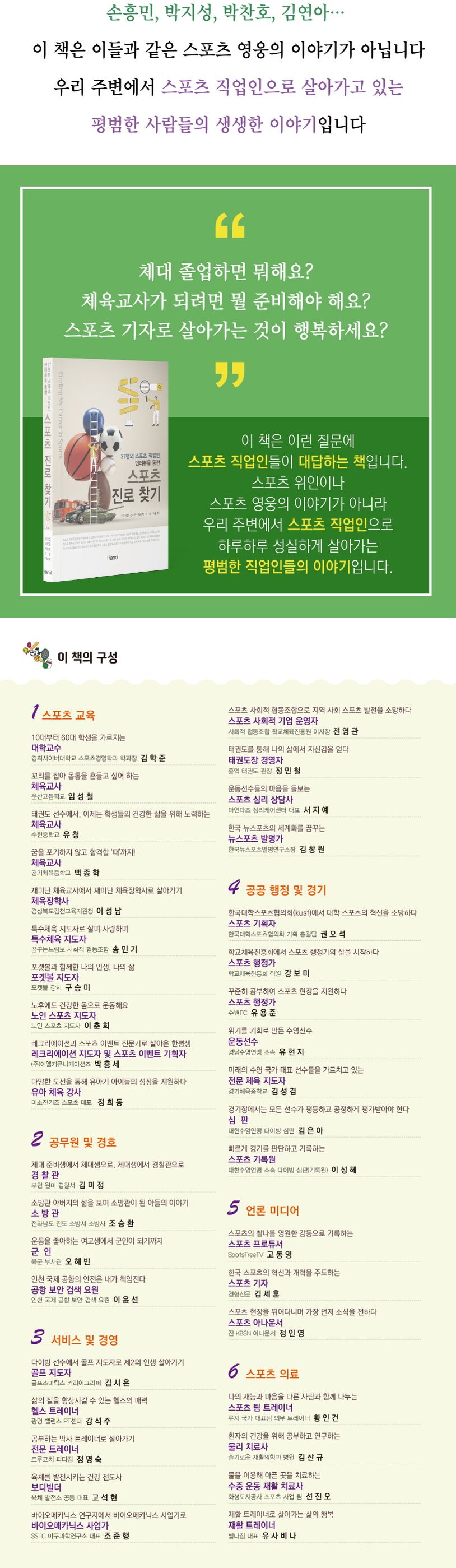스포츠 직업을 꿈꾸는 학생들에게 스포츠 직업인들의 삶을 구체적으로 전달하는 방법이 없을까를 고민하기 시작했습니다. 스포츠 분야로 진로를 꿈꾸는 이들은 많으나 그들이 참고할 만한 스포츠 진로 관련 도서는 상당히 부족합니다. 같은 고민을 가진 체육 교사들과 체대 교수님들을 만나 청소년과 청년층을 위한 스포츠 진로와 스포츠 직업에 관한 책을 함께 써보기로 마음을 모았습니다.
