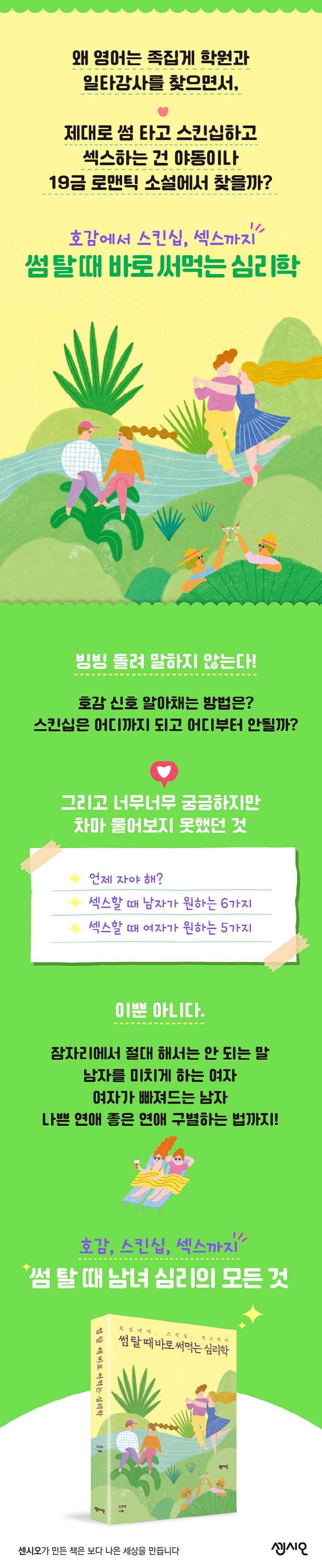 한데 어찌된 일인지 사람들은 영어는 족집게 학원과 일타강사를 찾으면서, 제대로 썸 타고 스킨십하고 섹스하는 법은 야동이나 19금 로맨스 소설에서 찾는다. 같은 기본 욕구인데 식욕을 다루는 먹방에는 열광하면서 성욕을 다루는 일에는 쉬쉬한다.