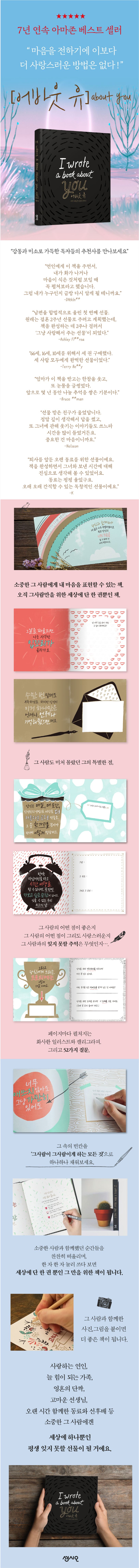 출간 즉시 아마존 베스트셀러에 오른 후, 7년 연속 분야 베스트셀러를 지키고 있는『어바웃 유(About You)』가 국내에 출간되었다. 소중한 사람에게 그를 위한 글을 채워 선물하는 기프트북이다.