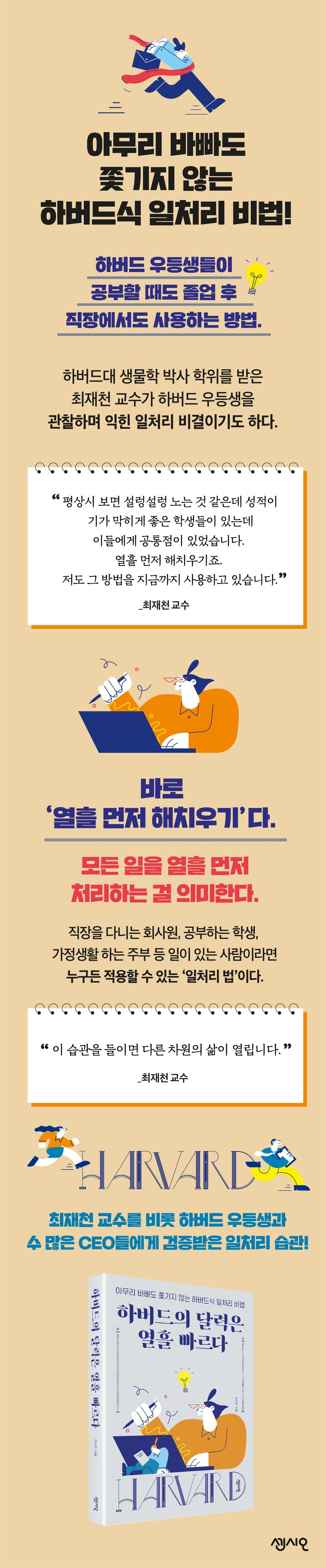 아무리 많은 일이 쏟아져도 전혀 쫓기지 않고 퀄리티 높은 결과물을 내는 하버드식 일 처리 비법을 소개하는 책 〈하버드의 달력은 열흘 빠르다〉가 출간됐다. 하버드에서 생물학 박사 학위를 받은 최재천 교수가 하버드 우등생을 관찰하며 익힌 후 지금까지 사용하고 있는 일 처리 비결이기도 하다.
