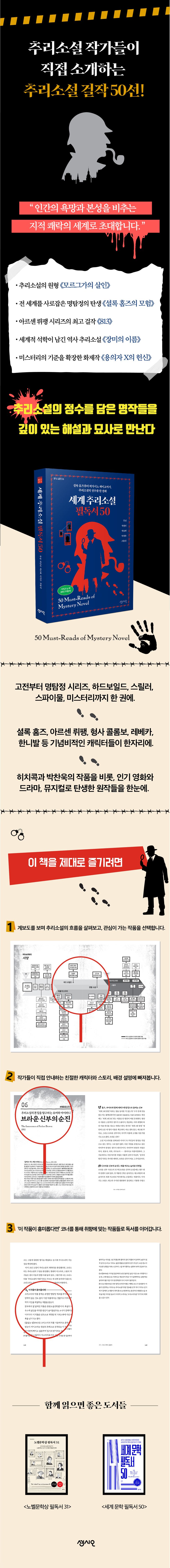 각 시대와 사회의 복잡다단한 이면, 다양한 인간 심리를 포착하고 섬세하게 풀어내는 독서의 재미를 원하는 독자라면 이 한 권 《세계 추리소설 필독서 50》이 확실한 출발점이 될 것이다.