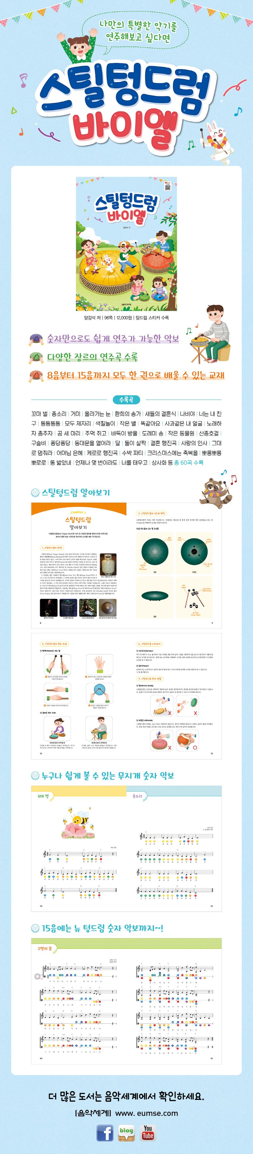 어린이부터 성인까지 혼자서도 쉽게 배울 수 있는 교본입니다. 계이름을 잘 읽지 못해도 숫자와 색깔만 안다면 누구나 쉽게 연주가 가능하며 기초를 충분히 연습할 수 있도록 정리하였습니다. 또한 8음부터 15음까지의 다양한 스틸텅드럼을 이 교재 한 권으로 충분히 습득할 수 있습니다.