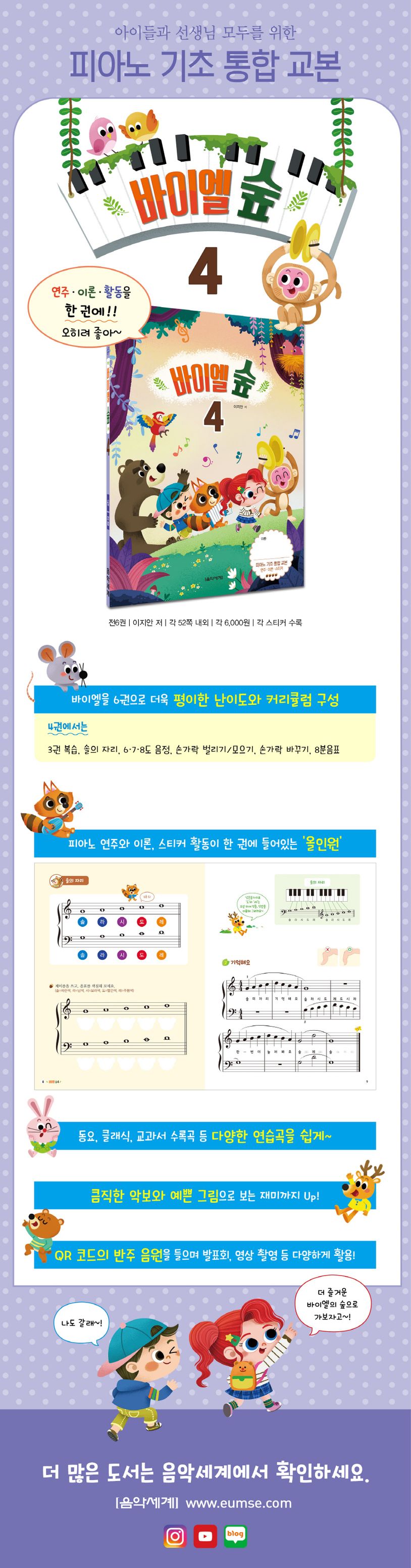 피아노를 처음 시작하는 6세 이상의 학습자를 위한 기초 피아노 교본입니다. 기초에 충실하지만 더욱 완만한 커리큘럼과 진도를 위해 총 6권으로 구성하였습니다. 피아노 연주 뿐만 아니라 이론과 스티커 활동까지 한 권으로 끝날 수 있는 올인원 교재로, 자칫 지루할 수 있는 바이엘 과정을 흥미롭게 접근할 수 있도록 하였습니다. 동요, 클래식, 교과서 수록곡, 캐럴 등 다양한 장르의 수록곡을 쉽고 재미있게 편곡하여 지루하지 않게 하였으며, 맨 마지막 장에 각 권의 복습 개념의 연주 페이지를 QR 코드 반주와 함께 수록해 동영상 촬영, 발표회 등 다양하게 활용할 수 있습니다.