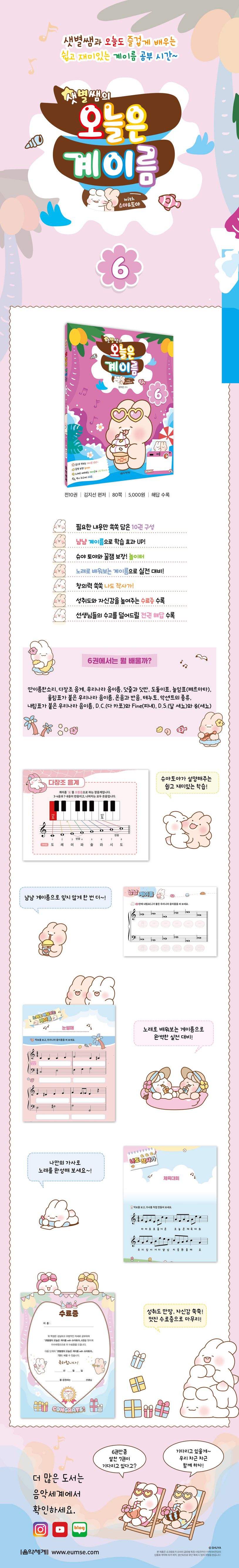〈샛별쌤의 오늘은 계이름 6 With 슈야토야〉는 총 10권으로 분권하여 계이름을 체계적으로 배울 수 있습니다. 다양한 문제 유형과 각 권마다 복습, '계이름 냠냠'을 통해 반복 학습을 하며 놓치는 내용 없이 꼼꼼하게 학습할 수 있도록 구성하였습니다. 아기자기한 슈야토야 캐릭터가 들어간 재미있는 놀이 페이지로 흥미도 함께 잡았습니다. 또한, 전권에 수록된 해답으로 선생님들의 편의성도 더욱 높였습니다.