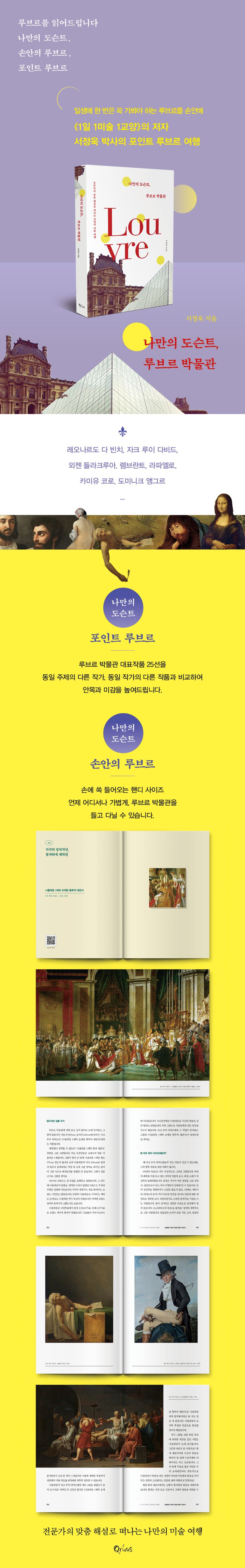 잔잔한 예술 명상과도 같은 유튜브 콘텐츠, 〈서정욱의 미술토크〉를 기반으로 한 《나만의 도슨트, 루브르 박물관》. 루브르 박물관 핵심작품 25점을 같은 주제의 다른 작품들과 함께 깊고 넓게 살펴본다. 루브르 방문을 계획하고 있다면 더없는 도슨트 가이드가 될 테고, 당장 루브르를 갈 수 없는 이들에게는 온택트 힐링을 선사할 것이다.