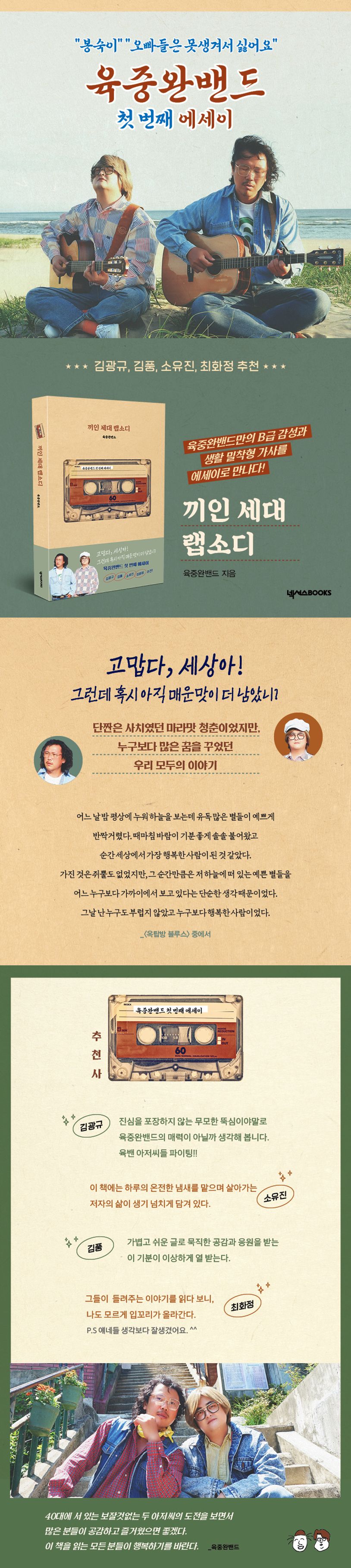 생활 밀착형 가사와 중독성 있는 멜로디, 어디 하나 빠지지 않는 비주얼로 시청각 모두를 만족시키는 20세기 비주얼 밴드 “육중완밴드”의 첫 번째 에세이.
